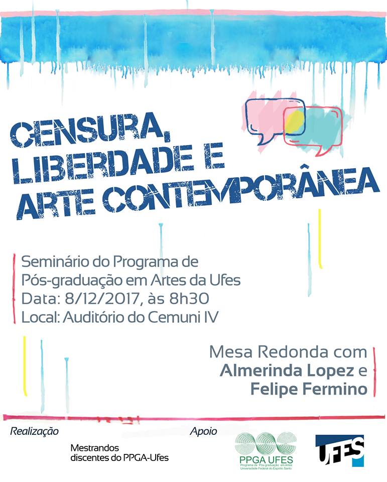 O Programa de Pós-Graduação em Artes (PPGA) da Ufes realiza nesta sexta-feira, 8, das 8h30 às 11h30, no auditório do prédio Cemuni IV, o seminário Censura, Liberdade e Arte Contemporânea.
