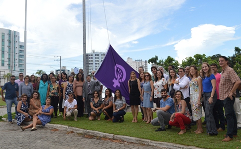 A solenidade de hasteamento foi realizada em frente ao Teatro Universitário e também contou com a presença da secretária da Ciência, Tecnologia, Inovação e Educação Profissional (Secti) do Estado, Cristina Engel; a subsecretaria de Políticas para Mulheres do Governo do Estado, Juliane de Araújo Barroso; a professora do Departamento de Direito e primeira mulher a ocupar a chefia do Ministério Público do Estado do Espírito Santo (MPES), Catarina Gazele; de representantes da Comissão Permanente de Direitos Humanos da Ufes; de pesquisadoras do Laboratório de Pesquisa sobre Violência Contra a Mulher no Espírito Santo (Lapvim/ES); e de membros das comissões de Prevenção de Assédio Sexual e Violência de Gênero na Universidade, e de Humanização nas Relações de Trabalho, Mediação de Conflitos e Prevenção do Assédio Moral; além de gestores, professores e servidores técnicos da Universidade.