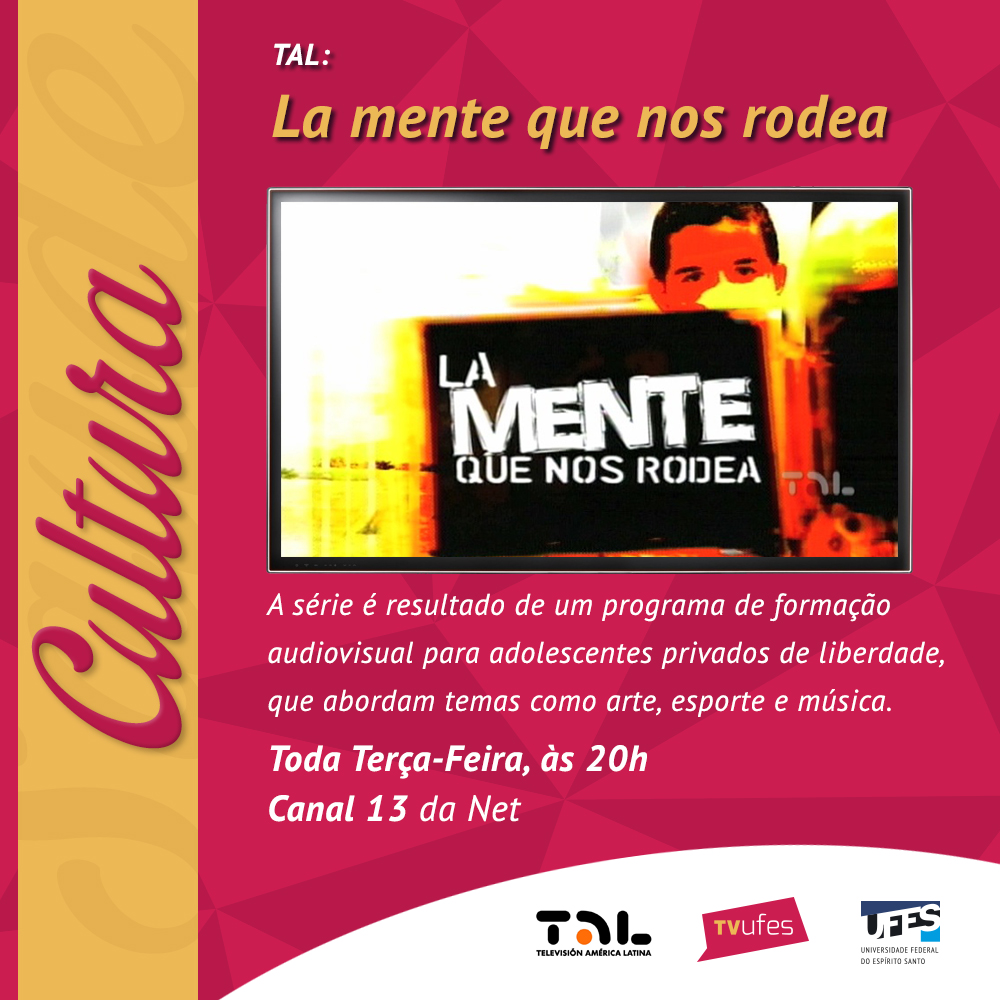 Nesta terça-feira, 1º de setembro, a TV Ufes começa a exibir no Canal Universitário (Canal 13 da NET), a série “La mente que nos rodea”. Trata-se de uma produção venezuelana realizada por adolescentes privados de liberdade que, após passarem por uma formação em audiovisual, produziram episódios com temas de seu interesse, como arte, esporte e música.