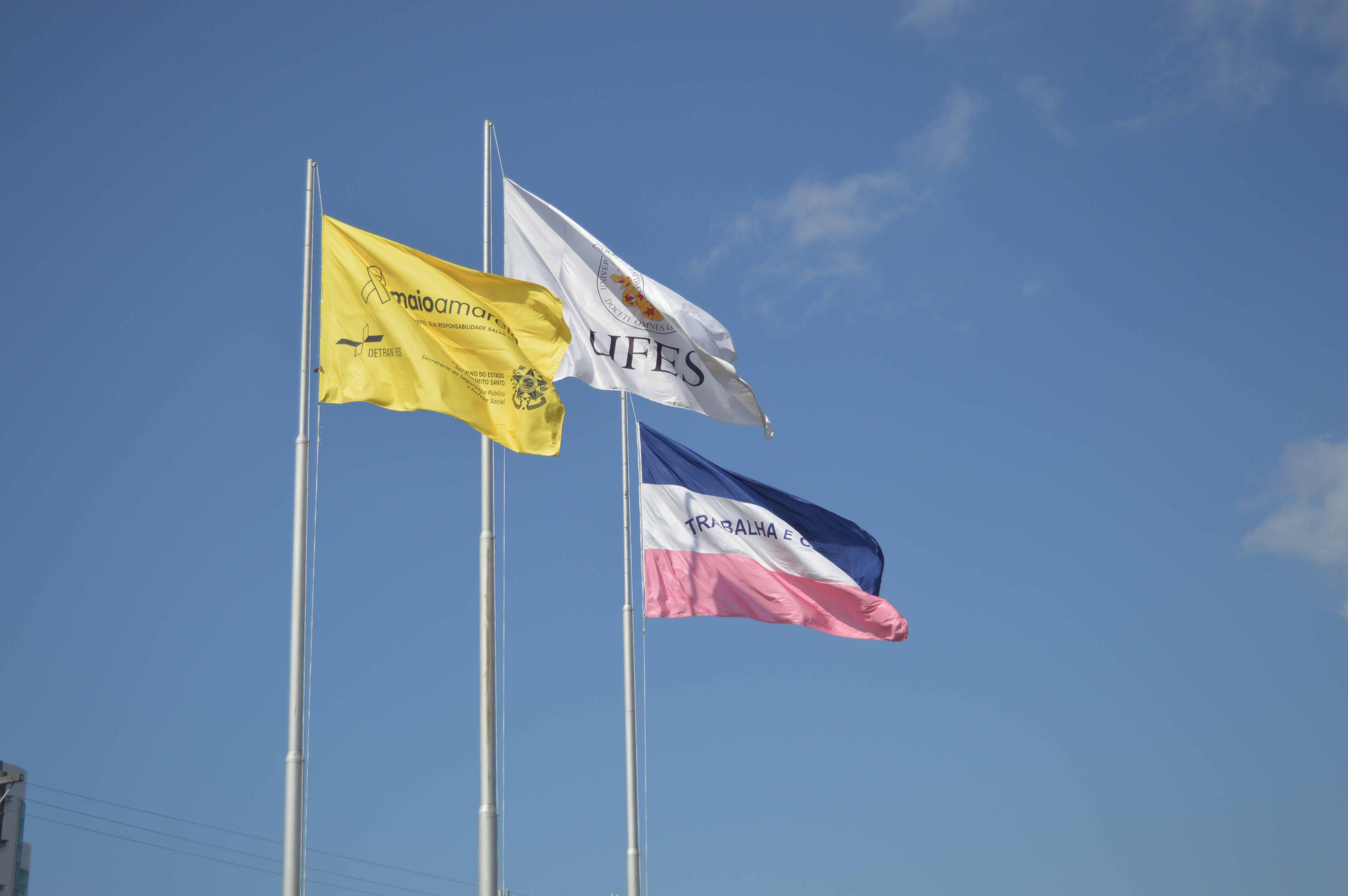 A Administração Central da Ufes realizou nesta quarta-feira, 19, o hasteamento da bandeira amarela alusiva ao movimento Maio Amarelo, que tem o objetivo de conscientizar as pessoas sobre a importância de atitudes positivas no trânsito para a redução do número de acidentes. A bandeira foi hasteada no campus de Goiabeiras, em frente ao Teatro Universitário, ao lado das bandeiras da Ufes e do Estado do Espírito Santo.