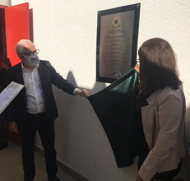 O Departamento de Oceanografia e Ecologia da Ufes recebeu nesta segunda-feira, 28, um novo prédio para abrigar os laboratórios utilizados nos estudos e pesquisas desenvolvidos pelo curso. Com 881,12 metros quadrados de área construída e 1.088,82 metros quadrados de área total, a nova instalação, localizada no campus de Goiabeiras, terá 16 laboratórios multidisciplinares e recebeu o nome do professor Camilo Dias Júnior, em homenagem ao docente do departamento falecido em janeiro deste ano.