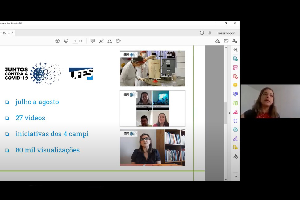 Nesta terça, 20, a programação incluiu painéis temáticos e espaços para trocas de experiências sobre políticas de comunicação e sobre a atuação das universidades frente ao novo coronavírus. Na oportunidade, a jornalista Camila Fregona apresentou o relato Os desafios da TV Ufes na pandemia: novos formatos de trabalho e potencialidades da produção colaborativa, com destaque para a mostra de vídeos Juntos contra a COVID-19, que reuniu iniciativas da comunidade universitária no enfretamento à pandemia.