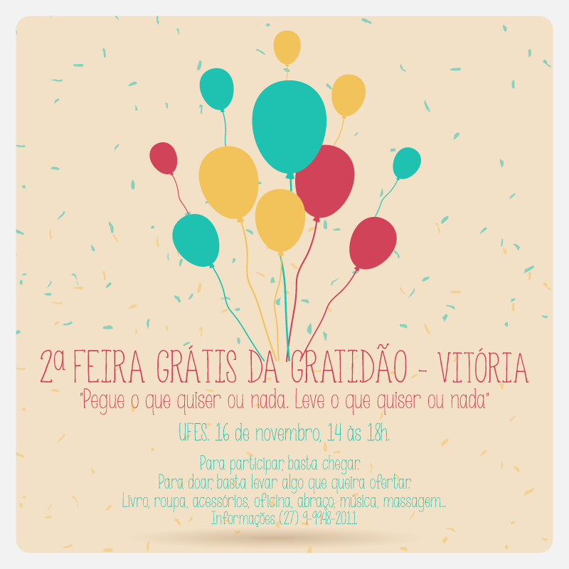 Outras informações sobre a Feira da Gratidão estão disponíveis na página do evento no Facebook: Feira Grátis da Gratidão - Vitória – ES.