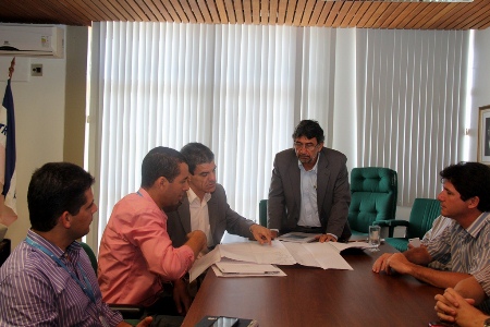 O reitor Reinaldo Centoducatte recebeu na última sexta-feira, 20, o projeto da Cesan para a implantação da coleta de esgoto no campus Goiabeiras. O documento foi entregue ao reitor pelo diretor de Meio Ambiente da companhia, Anselmo Tozi (na foto, apresentando o projeto ao reitor).