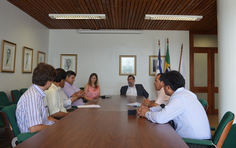 O reitor Reinaldo Centoducatte e a vice-reitora Ethel Maciel receberam na manhã desta sexta-feira, 16, os professores Francisco Claudio Huerta, Maximiliano Rubina, Kiko Celi e Pedro Jara, da Universidad Nacional Santiago Antunéz de Mayolo (Unasam, Peru). O encontro foi realizado no gabinete da reitoria.