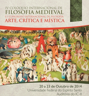 o IV Colóquio Internacional de Filosofia Medieval e I Congresso Internacional de Artes e Filosofia: Arte, Crítica e Mística. O evento vai até o dia 23 de outubro e acontece no auditório e sala 9 do IC-II, e nas salas 2 e 3 do anexo do Centro de Ciências Humanas e Naturais (CCHN), campus de Goiabeiras.