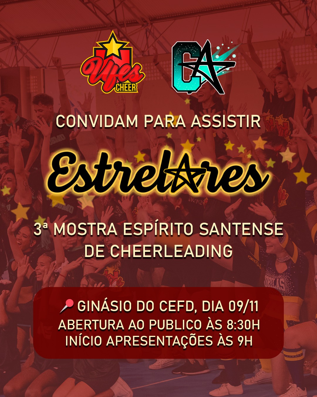 A EstrelarES é um evento artístico-esportivo-cultural que objetiva divulgar o Cheerleading e o trabalho que vem sendo desenvolvido pelos times locais. Ele é organizado pelo projeto de extensão UfesCheer e pelo Ginásio de Cheerleading Competitivo Cosmo Athletics. Nesta edição, se apresentarão as quatro equipes competitivas do grupo Cosmo All Star, a equipe UfesCheer, equipes universitárias parceiras, equipe do Ifes e equipes escolares da rede municipal de Vitória e Guarapari.