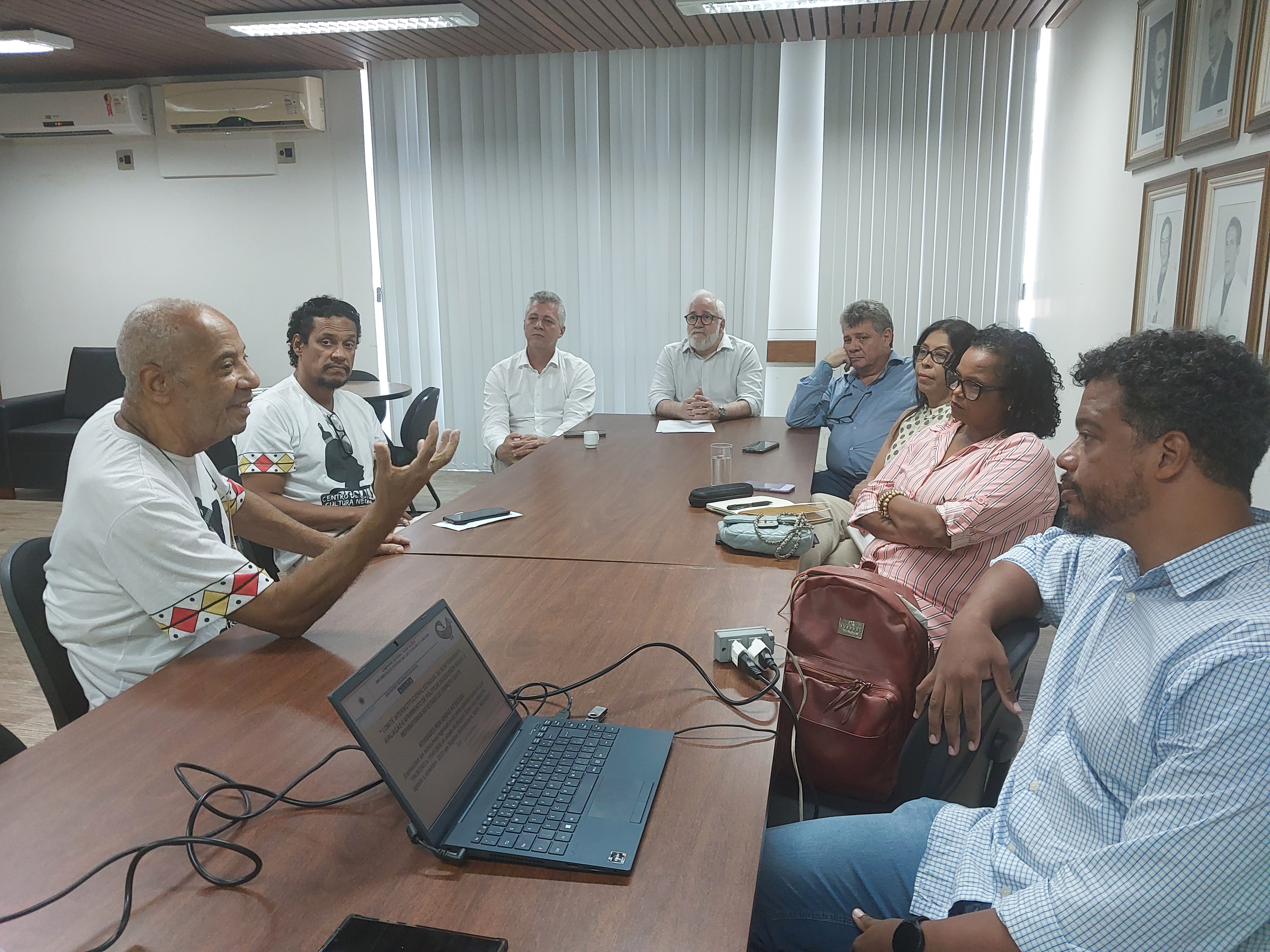 A Ufes iniciou as tratativas para integrar um comitê interinstitucional com o objetivo de monitorar, avaliar e aferir as políticas públicas de equidade racial e reparatórias no Espírito Santo. Em reunião realizada nesta terça-feira, 27, na sala de reuniões da reitoria, no campus de Goiabeiras, os representantes do Centro de Estudos da Cultura Negra no Estado do Espírito Santo (Cecun) Luís Carlos Oliveira, Sebastião Aleixo e Isaías Santana apresentaram a proposta ao reitor, Paulo Vargas, ao vice-reitor, Roney Pignaton, e ao reitor e à vice-reitora eleitos, Eustáquio de Castro e Sonia Lopes. Também estiveram presentes à reunião a professora Patrícia Rufino, que integra o Núcleo de Estudos Afro-brasileiros (Neab/Ufes), e o chefe de gabinete da reitoria, Áureo Banhos.