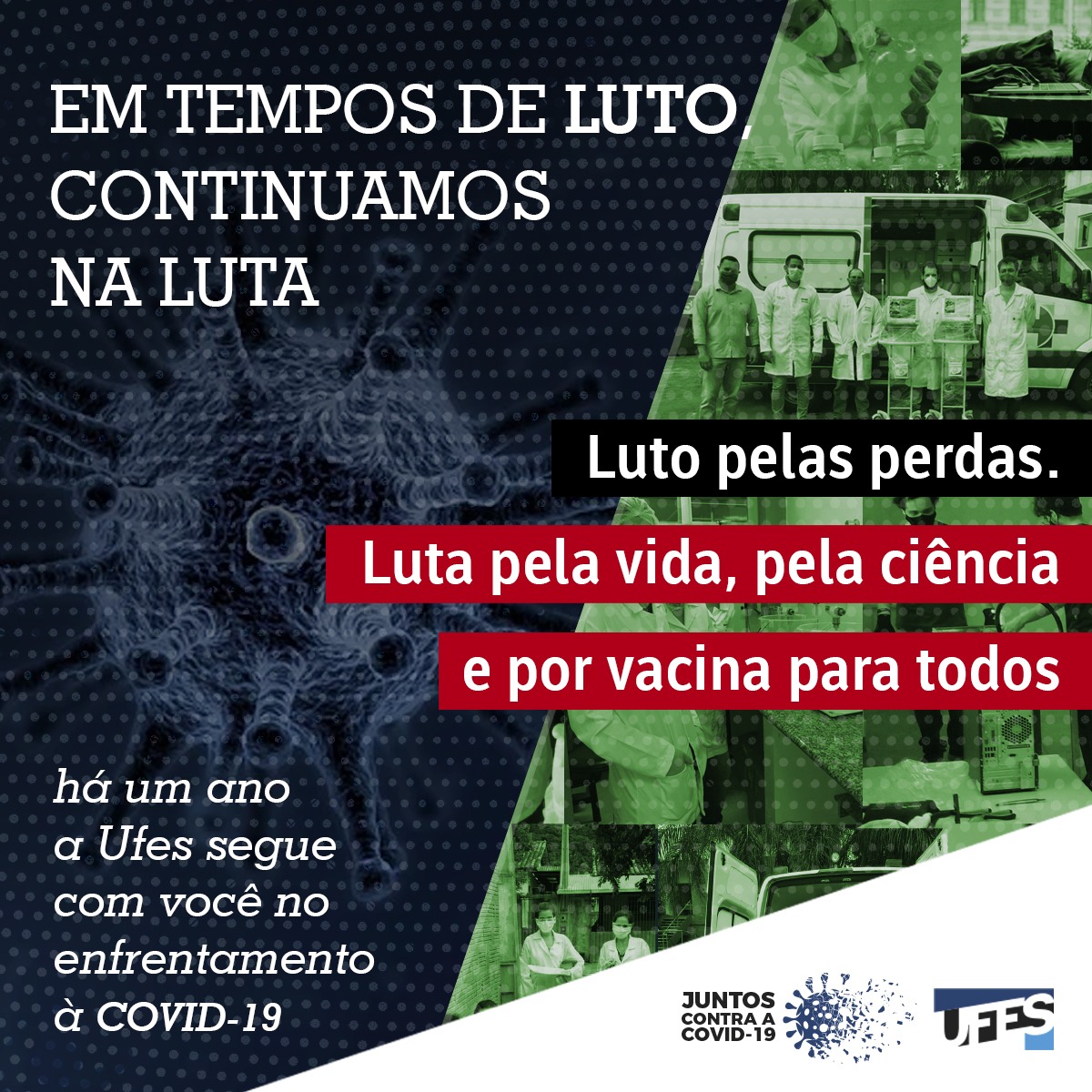 Ao completar este triste e indesejável primeiro ano de covid-19, solidarizamo-nos com a dor de todos os que perderam seus familiares, amigos e colegas de trabalho, e agradecemos o engajamento e o empenho dos nossos estudantes, professores e técnicos.