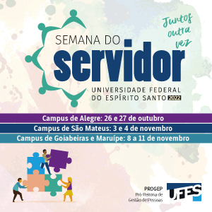 No campus em São Mateus, as atividades ocorrerão nos dias 3 e 4 de novembro, sem necessidade de inscrição prévia. Já em Vitória (Goiabeiras e Maruípe), a Semana do Servidor será de 8 a 11 de novembro e o período de inscrição começa na próxima segunda-feira, dia 24.