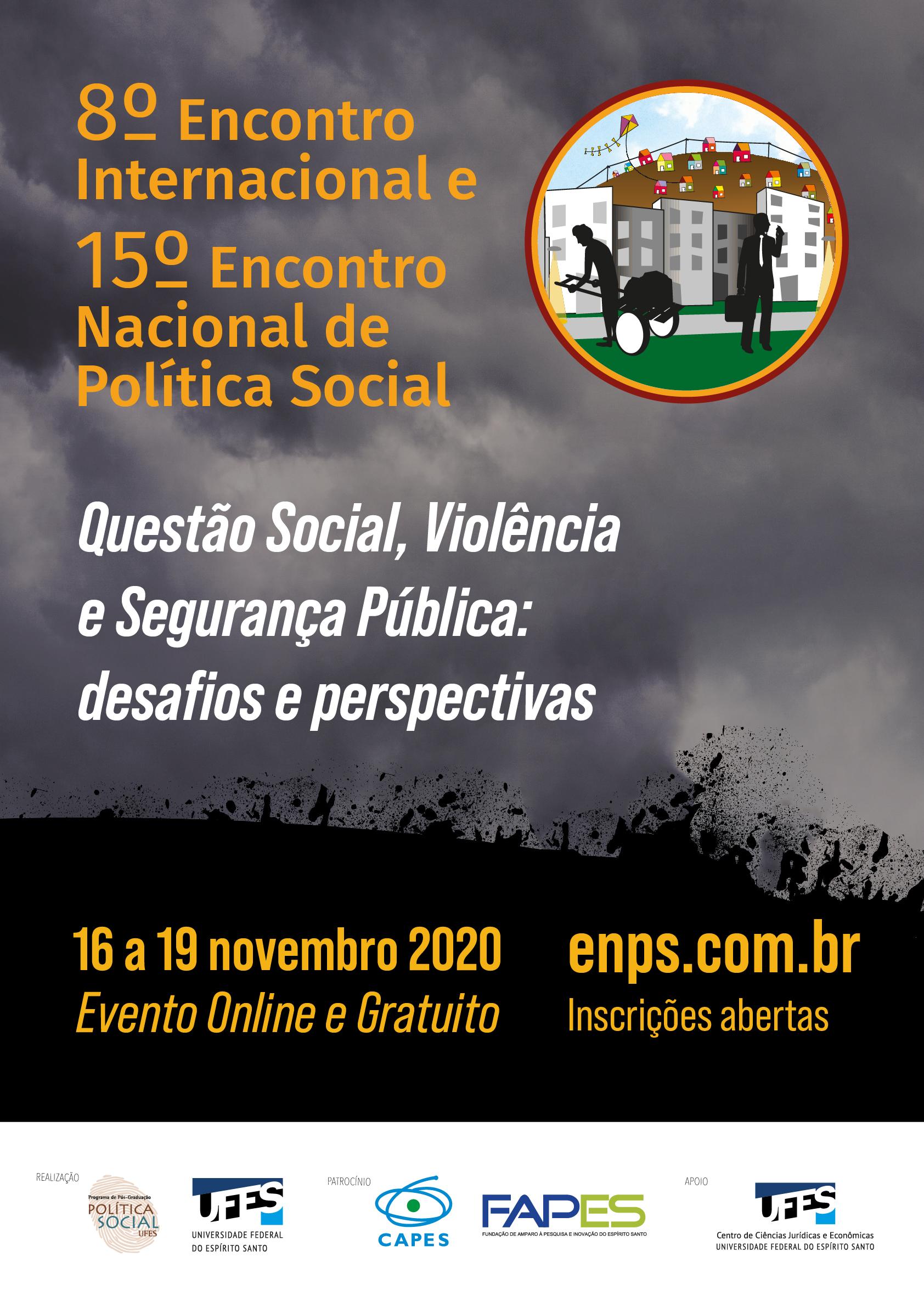 Questão social, violência e segurança pública: desafios e perspectivas é o tema do 8º Encontro Internacional e 15º Encontro Nacional de Política Social, que começa a partir desta segunda-feira, 16, e será realizado em formato on-line, com participação gratuita e aberta ao público.