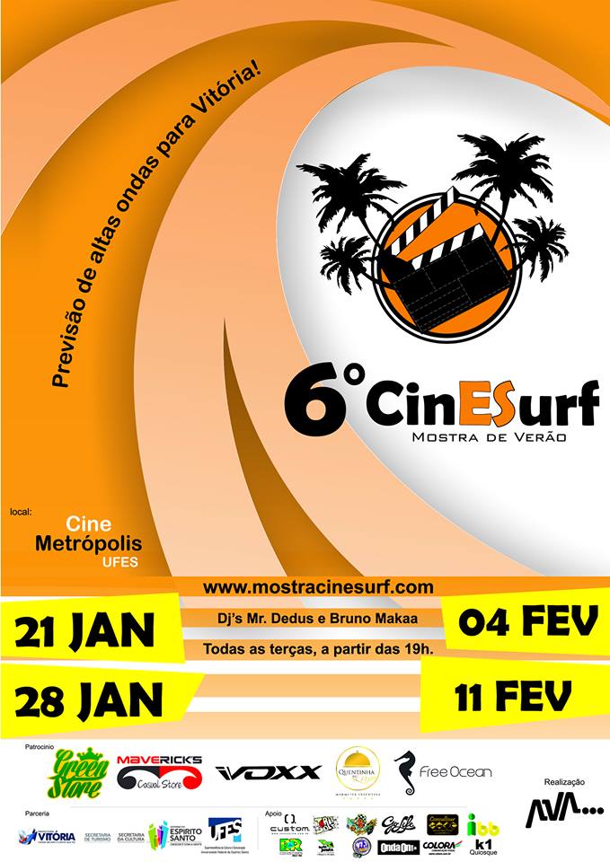 Nesta terça-feira, dia 4 de fevereiro, às 19 horas, continua no Cine Metrópolis o 6º Festival Vitória Cine Surf. O terceiro dia do evento traz mostra de filmes, exposições, sorteio de brindes e a apresentação da banda Moana. Serão exibidos os filmes “Hang Loose”, “Noronha”, do capixaba Cedric Rocha, e vídeos locais.
