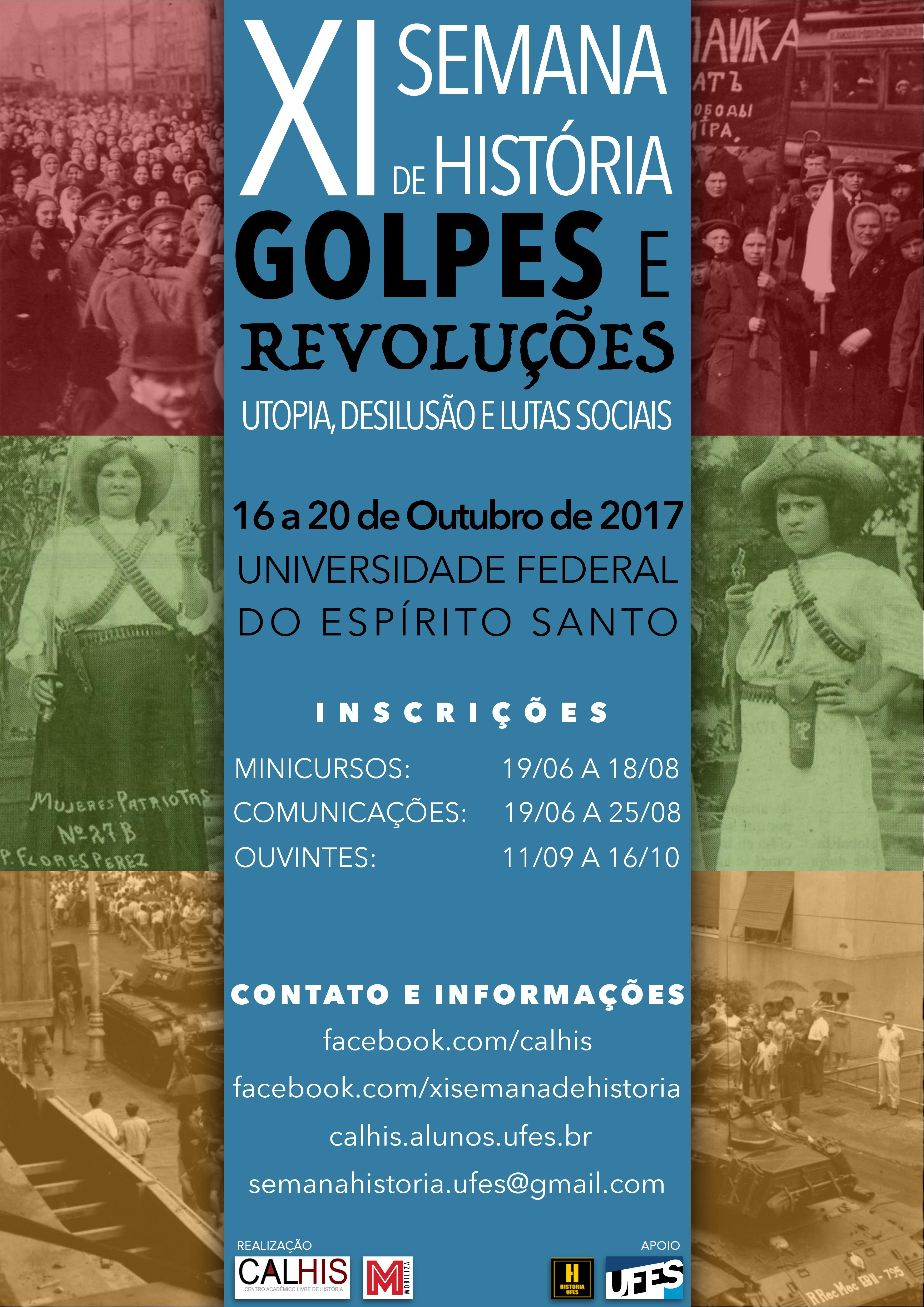 Estão abertas as inscrições para os interessados em ministrar minicursos ou apresentar trabalhos na XI Semana de História da Ufes, que será realizada entre os dias 16 e 20 de outubro no campus de Goiabeiras com o tema “Golpes e Revoluções: utopia, desilusão e lutas sociais”.